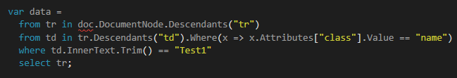 위의 코드처럼 linq를 통해 자르고자 하는 tag의 Attribute값을 통해 쿼리를 생성할 수도 있다.